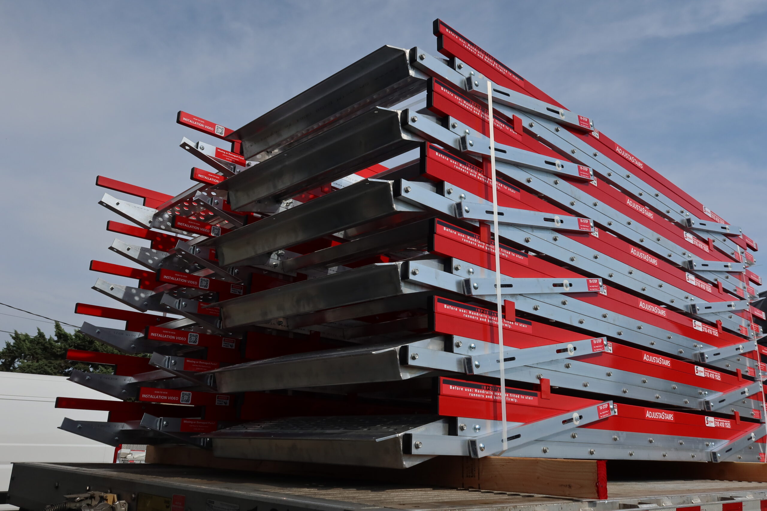 AdjustaStairs™ are available in standard configurations supporting up to 20 steps and high-access configurations supporting up to 40 steps. High-access models are created by joining two standard AdjustaStairs systems together and reinforcing the connection with an H-Brace, providing added stability when accessing greater heights.