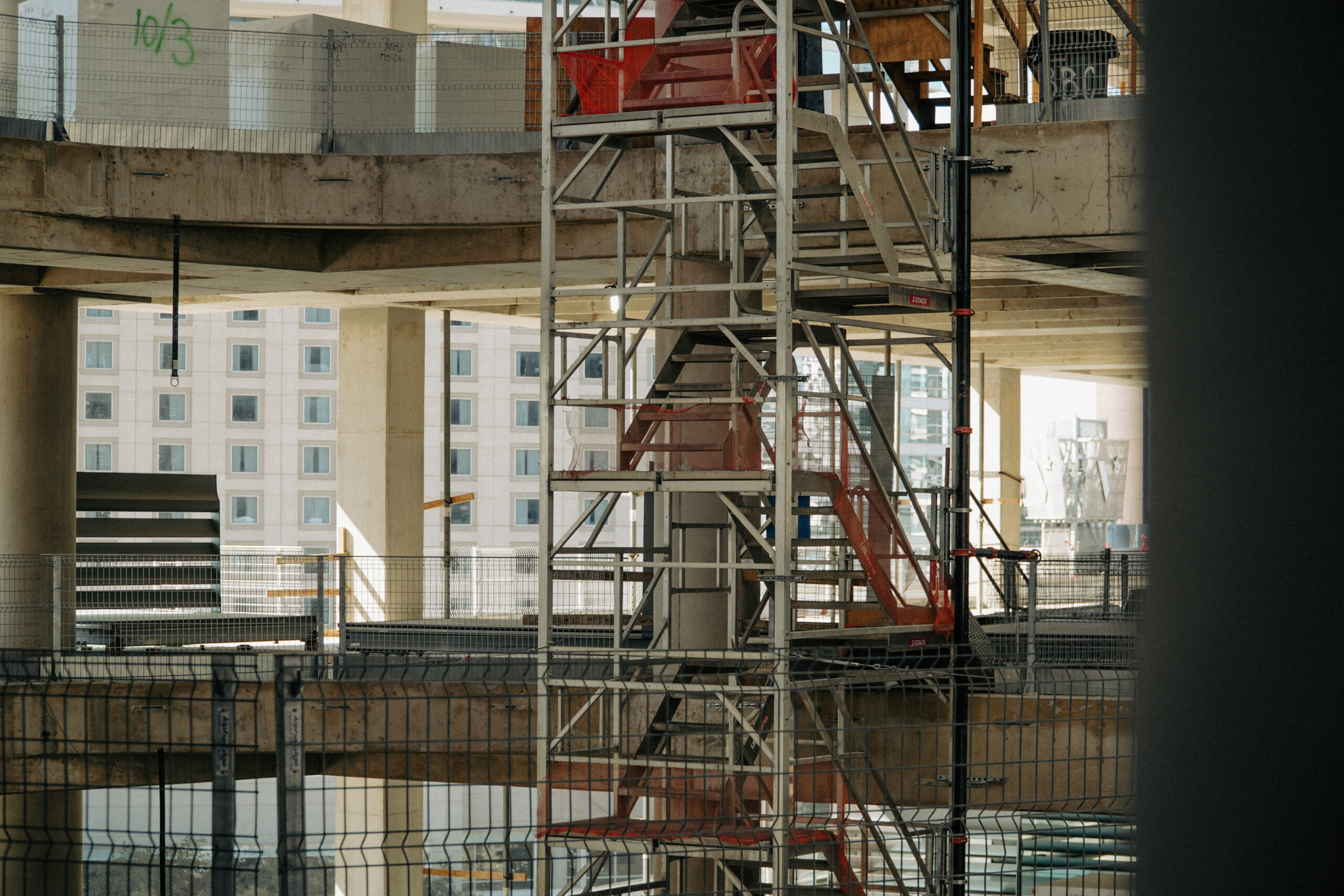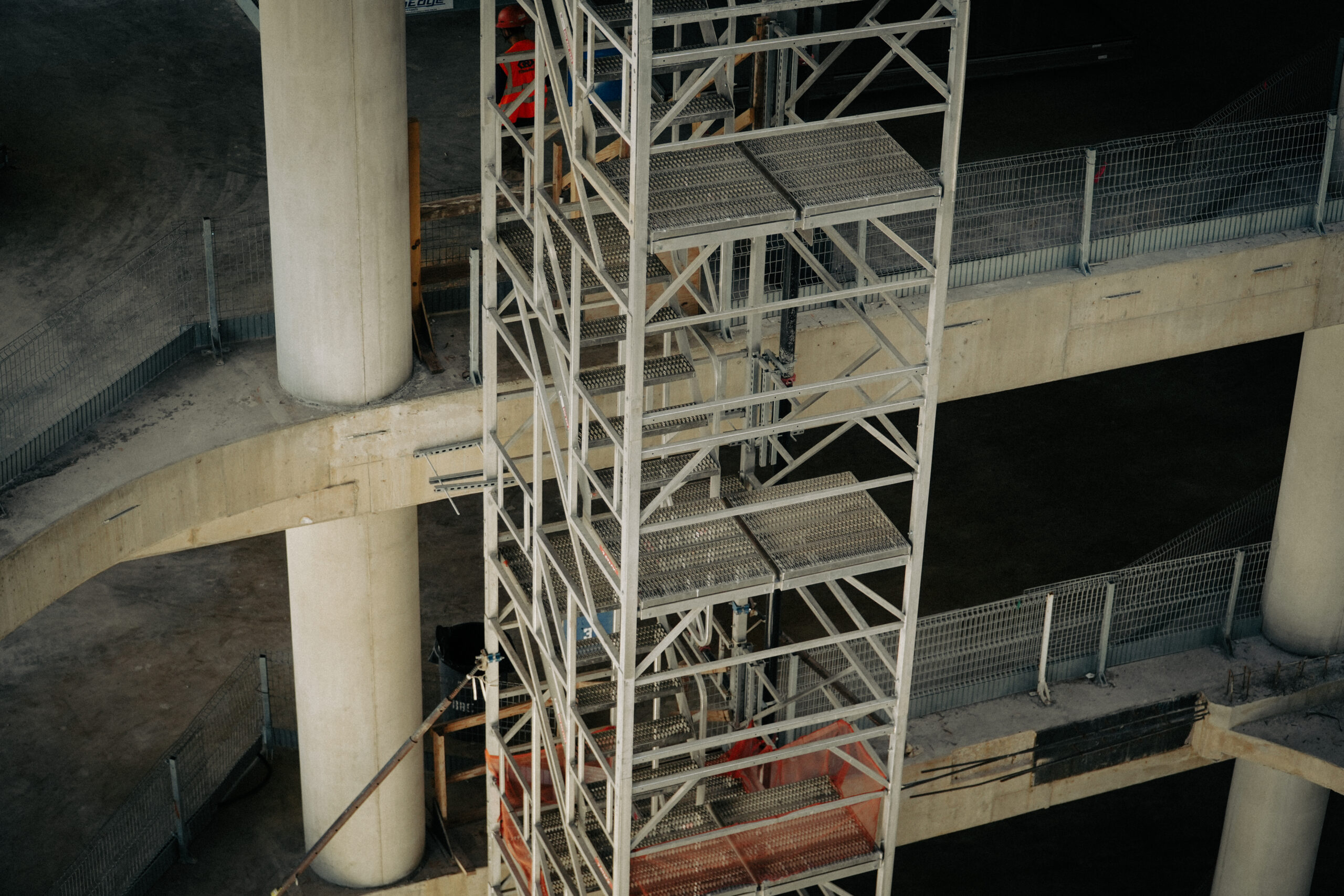 Z-Stack™ provides safe, compliant stair tower access across multiple building levels on active job sites. Modular sections stack vertically to deliver stable, repeatable movement between floors as the site progresses.